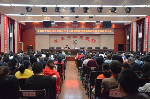 4月23日晚上,娄底市中医医院在医技楼五楼大会议召开违法中央八项规定精神突出问题专项治理动员大会,全院干部职工参加会议,院长陈福如主持会议。