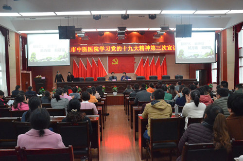 11月29日,娄底市中医医院学习党的十九大精神第三次宣讲会在五楼大会议室举行,全院干部职工参加了会议。大会特邀中共娄底市委党校教务处处长、副教授王俊作题为“新时代、新思想、新方略、新征程”的宣讲报告。