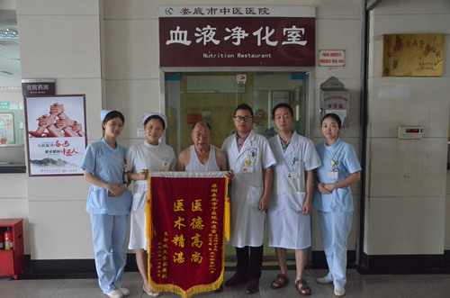 7月11日,一位来自安化梅城的80岁高龄的老爷爷,拿着一面印有“医德高尚、技术精湛”几个大字的锦旗走进了我院血透室,以表达他对我院血透室医护人员的感激之情。原来这大爷是王新娥老奶奶的家属,王奶奶在我院透析长达4年。