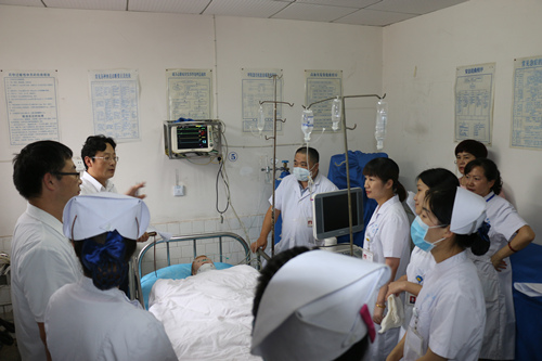 本次应急演练由应急领导小组组长、业务副院长贺建雄同志担任应急总指挥,医务科和科教科担任副总指挥并负责拟定演练方案,院总值班负责总协调,急诊科、放射科、检验科、B超室、内科、外科、手术室、保卫科等相关职能部门、临床科室共同参加。