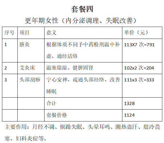 暖宫散寒套餐:适用于宫寒痛经人群;
