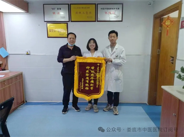 近日,娄底市中医医院针灸科主任饶敏收到一面印有“带状疱疹痛刺骨、神医除魔有绝招”的锦旗,据悉,患者朱某因消化道出血在外院住院,治疗期间右侧肩颈部及右胸部突发带状疱疹,对症处理20天后,仍治疗效果不佳。为寻求中医治疗特来我院针灸科就诊。饶敏接诊后对其予以火针及针灸治疗15天,疼痛症状消失,患者及家属不禁感叹小小钢针竟如此神奇。