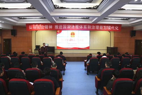 2019年12月6日下午,娄底市中医医院围绕“弘扬宪法精神,推进国家治理体系和治理能力现代化”为主题,组织全体中层以上干部重点学习习近平新时代中国特色社会主义思想,习近平总书记全面依法治国的新理念、新思想、新战略,党的十九大和十九届四中全会精神,宪法的地位、作用和主要内容,还举行了庄严而神圣的宪法宣誓活动。