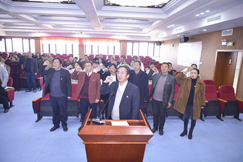 全体中层以上干部在领誓人院党委书记谭华清的带领下,举起右拳,进行了庄严的宣誓:“我宣誓,忠于中华人民共和国宪法,维护宪法权威,履行法定职责,忠于祖国、忠于人民,恪尽职守、廉洁奉公,接受人民监督,为建设富强民主文明和谐美丽的社会主义现代化强国努力奋斗!”。