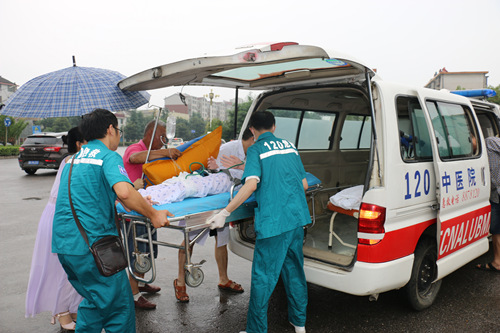 下午三点,应急演练正式开始。在院外城西加油站附近设置车祸现场,一名男性老年人因遭小汽车撞倒并碾压,导致右大腿开放性骨折,骨折端暴露,并有腹痛,意识尚清楚,请求救治的突发场景,以此来检验我院院前急诊急救的快速处理能力,院内急诊的救治能力,各科室应急状况的快速反应能力和配合能力,以及我院医疗核心制度的执行情况,突发公共事件时医院的紧急调度和指挥能力。演练过程中,各部门人员密切配合,成功完成模拟救治。