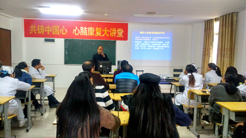 学术讲座在医技楼电教室举行,科教科科长唐彩艳主持会议,内四科主任肖士桂教授就心力衰竭的诊断与治疗新进展、指南解读作了专题学术报告。