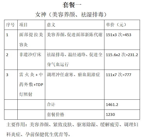 通用优惠:所有中医妇科理疗项目(针灸、中药熏蒸、穴位贴敷)活动期间八折,消费满1000元赠送养生锤、足浴包、暖宫贴三选一。
