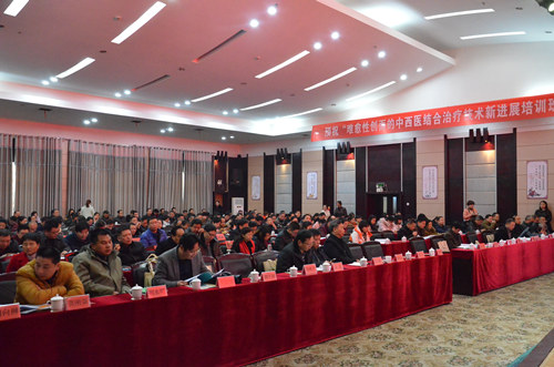 为了进一步促进多学科在创面诊疗,提高医务人员处理各种难愈性创面能力,从而为患者提供规范、便捷、高效的医疗服务。经省中医药管理局与娄底市中医药学会批准,由我院烧伤整形科承办的“难愈性创面的中西医结合治疗技术新进展培训班”于12月29日在娄底金香大酒店三楼大会议室召开了,来自省中医药管理局、市政协、市民政局、市卫计委、娄底职院医学院等相关领导及娄底市各级医院领导、专家及专业医护人员共计200余人参加了培训班。