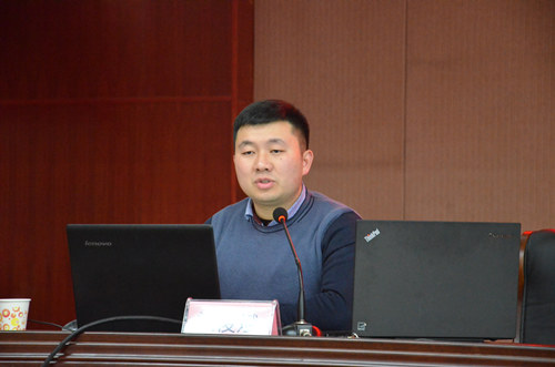 市委宣传部、讲师团成员梁俊斌正在作报告